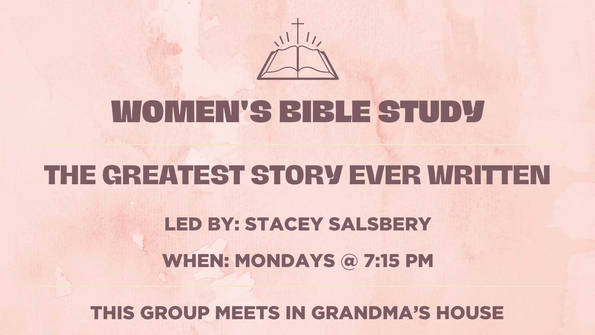Join us for women's Bible study on Monday nights to learn the story of the Bible.