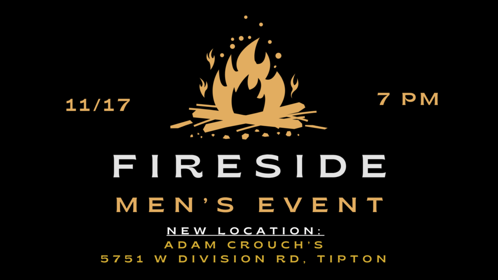 Fireside is a monthly endeavor for brotherhood and outreach to interested non-Christians. Our hope is to make stronger men and reach the men in our communities that don’t know what a life with Jesus can mean. We’re going to discuss real topics about life. The next Fireside will be at Adam Crouch’s house, November 17th starting at 7pm. There is no need to sign up just come and join in on the fun!