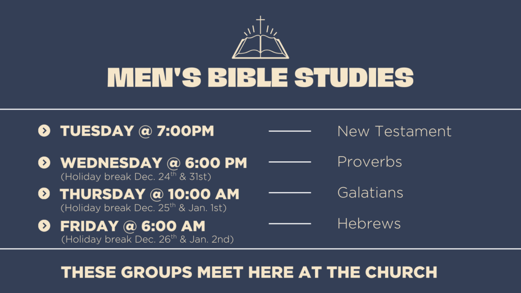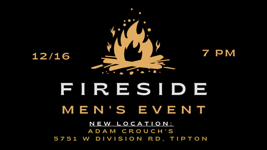 Fireside is a monthly endeavor for brotherhood and outreach to interested non-Christians. Our hope is to make stronger men and reach the men in our communities that don’t know what a life with Jesus can mean. We’re going to discuss real topics about life. The next Fireside will be at Adam Crouch’s house, December 16th starting at 7pm. There is no need to sign up just come and join in on the fun!