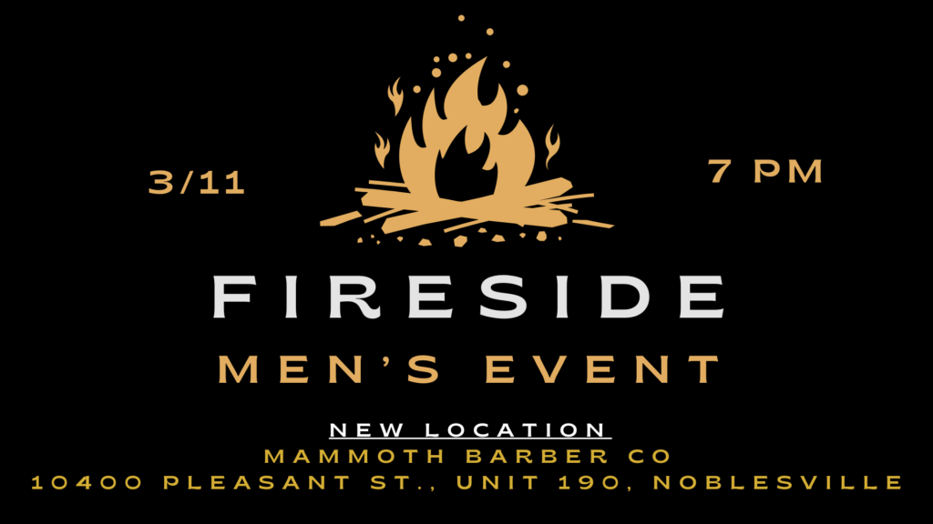 Fireside is a monthly endeavor for brotherhood and outreach to interested non-Christians. Our hope is to make stronger men and reach the men in our communities that don’t know what a life with Jesus can mean. We’re going to discuss real topics about life. The next Fireside will be at Mammoth Barber Co. in Noblesville, February 10th starting at 7pm. There is no need to sign up just come and join in on the fun!