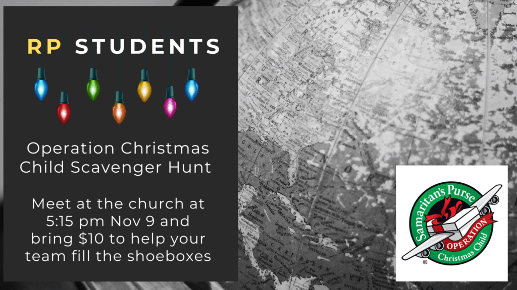 -Weekly Parent Email: The parent email is a weekly email to make sure you are in the loop with what’s going on at RP Students. If you would like to join our email, please contact Pastor Craig at cdurfor@rockprairie.net